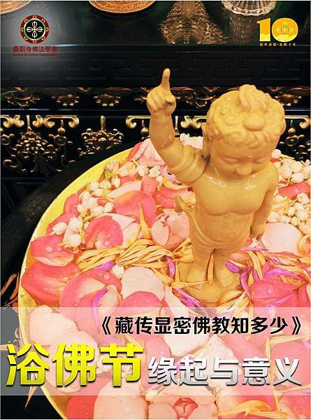 浴佛節,是為了紀念佛陀的誕生。在三千多年前,摩耶夫人夢見六牙白象從右脅進入,因而懷有身孕。十個月後,夫人於回娘家待產的途中,於藍毗尼園,看到微妙芳香的無憂樹,便舉起右手攀扶,這時世尊即從夫人右脅降生到世間,並且向四方各走七步,腳下步步均生大蓮花;然後一手指天、一手指地說:「天上天下,唯我獨尊。」(「我」指眾生本具的佛性)此時大地震動,天女散花,四天王以十二種香湯、名花灌沐太子金身,九龍亦從上而下吐水,一溫一涼為佛沐浴,人天無不 歡欣鼓舞,因為世尊的到來,為三界熱惱的眾生,帶來無比清涼的佛法,更為迷失的眾生找到一條解脫之道。