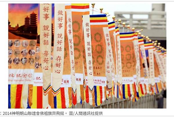 面旗幟為佛教的教旗。