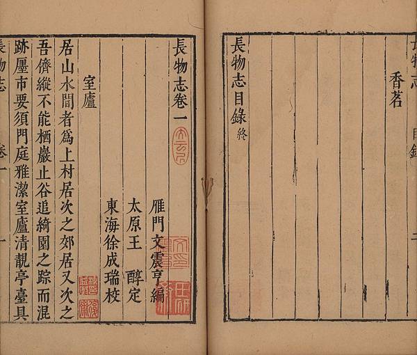 明末東海徐成瑞校刊本《長物志》,國家圖書館藏。(國立故宮博物院提供)