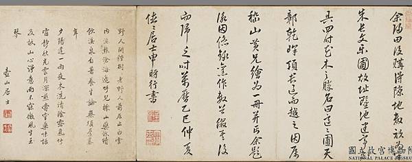 黃炳中、申時行(明神宗萬曆三十三年(1605))。[明黃炳中申時行適適圃圖 冊 水竹居]。