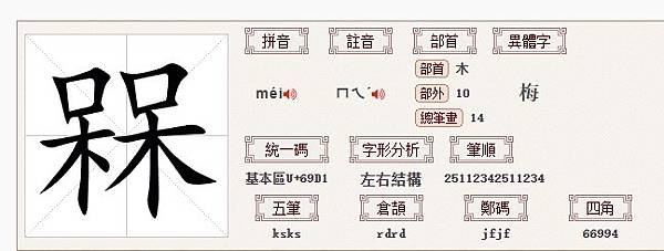 「槑齋」,一個解釋是它真的很呆,因為2個呆在一起。另一個解釋就2個(人)相親相愛。因為字體寫時是手牽手,而齋就是家、宅的意思。一個家一定有2個人來組合,所以一定要相親相愛、要呆一點;當一個開口的時候另一個就嘴巴小一點。所以佛家才會說:家是最好的修行道場,家和就萬事興、家和社會就安定。