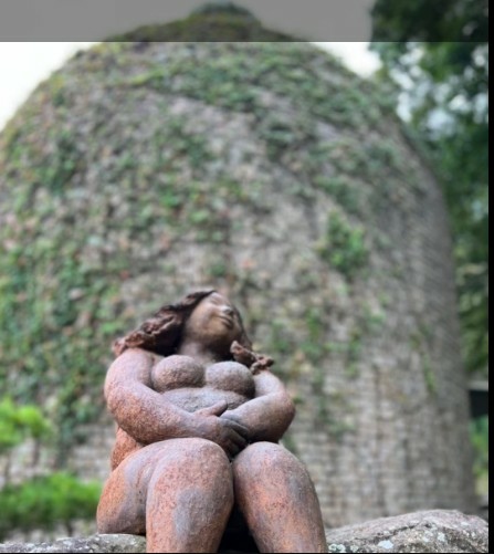 爾後兩人逛到明治神宮,日本友人指「你看!這就是你們阿里山的檜木。」一番話讓黃秀華反思「京都有世界文化遺產,這來自於世代的相傳,台灣能否也保留下來?」她回國後,向竹市雕刻家蕭文周提及,希望能保留台灣好的木頭,為此,蕭文周花費10年完成88尊檜木大悲咒立體佛像。後來陸續還有18羅漢、地藏王菩薩及回首阿彌陀佛立像等,庭園也有在地藝術家的裝置藝術,因為經常大門深鎖,蒙上神秘而美麗的面紗。