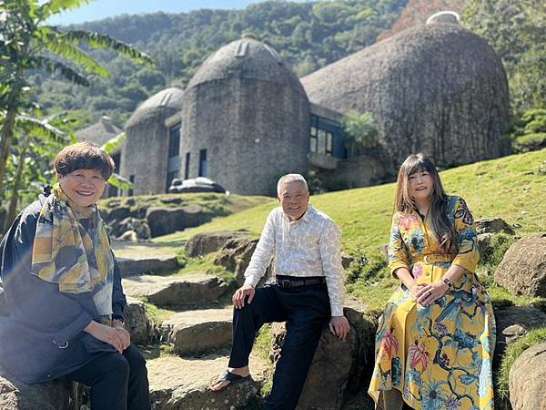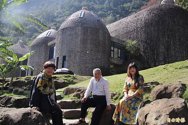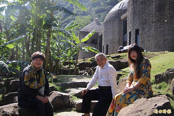 這棟建築物又稱「槑齋」,私宅的主人是黃秀華(左)、莊添祿(中)夫婦,右為日前在槑齋辦展的策展人蔣育鳳。記者郭政芬/攝影