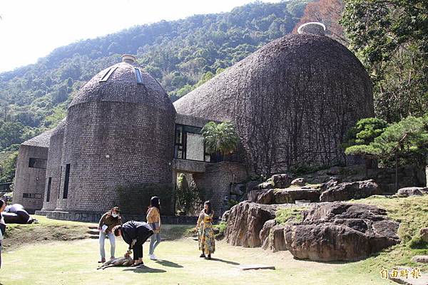 整棟建築強調自然工法,光是外牆,就用了20多萬個石片,每一面都是工人親手敲制,非常珍貴。記者郭政芬/攝影