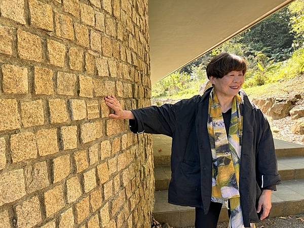 槑齋當初主體灌漿後,把手工敲打下來的花崗岩片,一片一片用手嵌在外牆牆面上,足足有20多萬片,這在台灣也算是很少見的工法。
