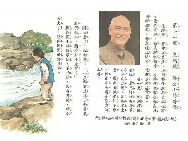 要不然就是什麼蔣公看魚逆流而上,蔣公看了心想:「小魚都有這樣大的勇氣,我們做人,能不如小魚嗎?」頓時會覺得蔣公好神,小時候就有這種胸懷,也想要學他逆流而上,於是脫了衣服往河裡游去,結果不管怎麼游都不會前進,才知道都是騙人的。還說蔣公小時候很喜歡做家事,什麼掃地澆花,母親在忙時還會在一旁讀書寫字,可是自己都不喜歡做家事,也不喜歡唸書,難怪不能成為總統,看來先總統果真是天賦異凜。