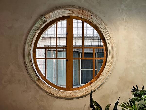 或者新州屋二樓餐酒館圓窗方窗圓窗包含3層線版,可以看見不同時代的痕跡(圖片提供:或者新州屋)