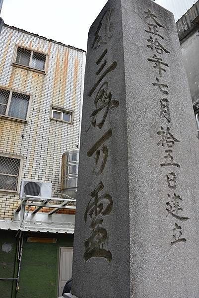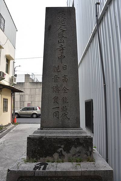 本塔為日式三疊石方尖碑形式,材質為磚造洗石子,正面刻有「阿彌陀佛梵文種子字:hrīḥ 」、「三界萬靈」、「觀音講」等字;背面刻「南無阿彌陀佛 順譽寫」;側面為落款「發起人鳳山寺中日高全能時代觀音講貟一同」;另一面為「大正拾年七月拾五日建立」