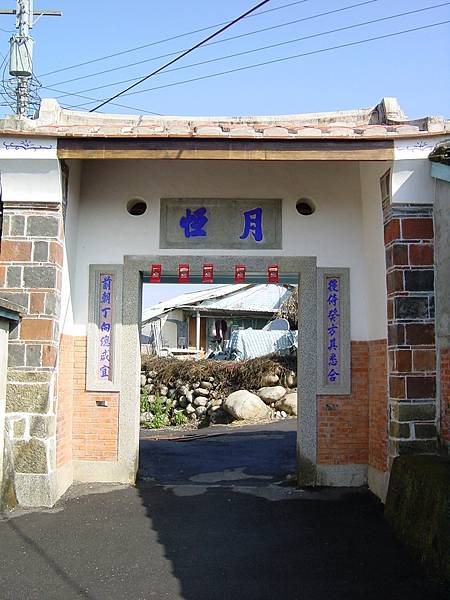月恆門位於東勢區和興庄西方,前臨大甲溪,造型規模與「日昇門」相仿,上有「後倚癸方其悉合;前朝丁向總咸宜。」藍字對聯,在天干中,癸方是北方,而丁向是南向,亦可看出月恆門是座北朝南的。 月恆門-文化部國家文化記憶庫