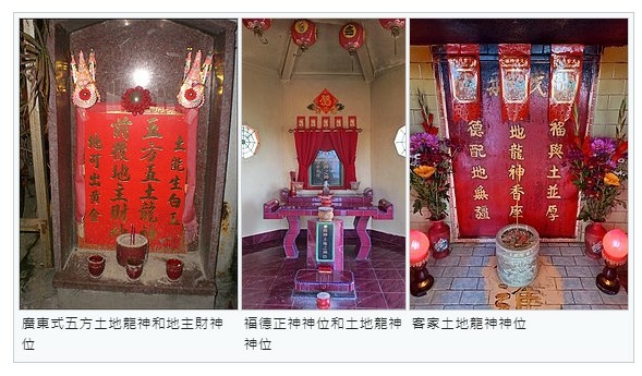 兩廣則流行在家中奉祀「前後地主財神、五方五土龍神」神位,以求家中平安。