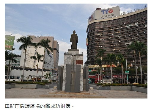 然而,弔詭的是,當人們來到這個圓環時,為的是步入由日本政府所建設的火車站,而非瞻仰鄭成功的銅像;當人們駛入圓環時,左手邊是鄭成功的銅像,但右手邊則是一整排象徵日本殖民的椰子樹。這是個充滿權力鬥爭的政治場域。即使國民政府一股腦兒地去日本化,日本政府在台灣所留下的,也早已根深蒂固
