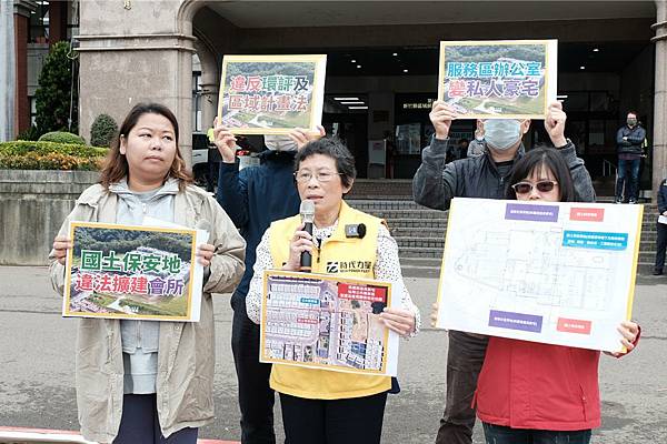 時力立委陳椒華踢爆「有謙家園」涉嫌違反環評法,且有土石災害的居住安全疑慮。(記者廖雪茹攝)