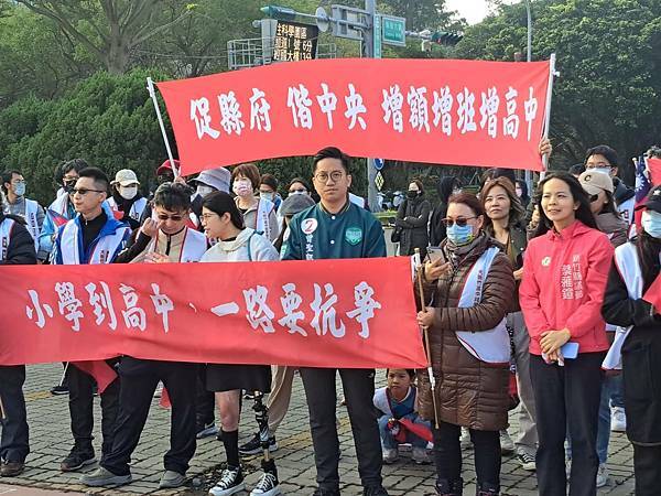 今天除了家長自發陳情之外,民進黨竹縣議員蔡蕥鍹、民進黨竹縣二選區立委候選人曾聖凱、綠黨一選區候選人余筱菁也到場相挺,蔡蕥鍹表示,雖然縣府有提出改善方案,但仍不足,呼籲不只有陽明交大設立的實驗高中,在地竹北國中就能推完全中學,因應未來華興重劃區爆量問題。