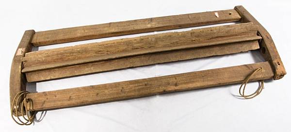 腳踏板有兩塊,一為前踏,一為後踏,二條長的踏板與二個橫頭相接合組成長方形的碌碡架,碌碡念是按置在架子中央的滾桶軸,橫切面如放射狀的多角星,二端穿置在橫頭中間,可以轉動,農夫右腳踏在前踏板,左腳踏在後踏板,兩端有籐環,可用繩連接牛擔,由牛拉著工作。