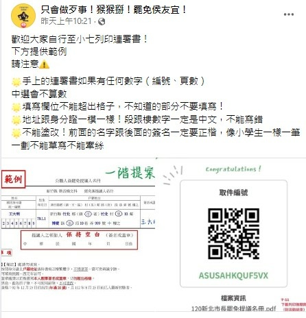 歡迎大家自行至小七列印連署書! 下方提供範例 請注意⚠️… - 只會做歹事!猴猴掰!罷免侯友宜! | Facebook