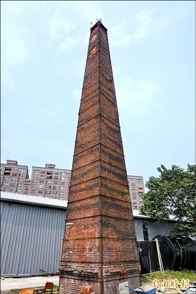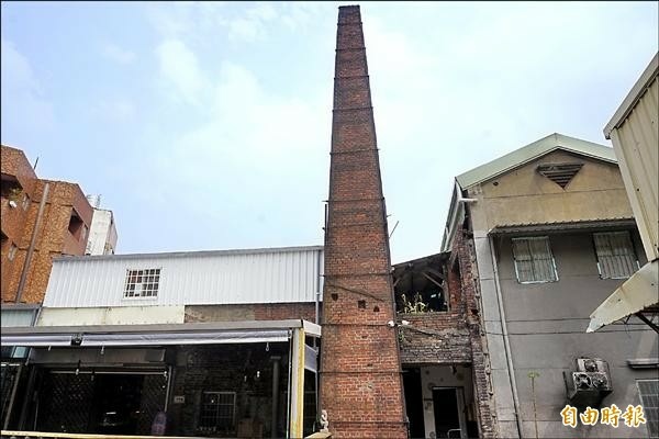 中興窯位於文化路七十一號,僅存煙囪。(記者張安蕎攝)