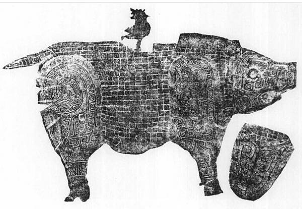 而之所以以野豬為器物形制,是因為商周時期的象生動物具有表意的功能及象征的意味,作為人們與神靈溝通的媒介,起著娛神和避邪的功效。當然,這件青銅器也有其現實功用,那就是作為「酒器」,可以供人們儲酒用。此器重達30多公斤,容積有13公升,盛滿后,一個人都難以搬運。其背部的橢圓形孔,是酒器的出口。由于豬尊盛酒后難以倒出,所以應該配有取酒的勺。