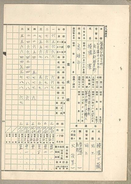 橫溝氏在臺灣製鹽株式會社的任職時間應該很短暫,就被同鄉的住吉一郎邀聘到埔里籌設「埔里製紙所」發展和紙製造事業。這可從埔里尋常高等小學校的學籍資料中可以得到佐證。該校保存有橫溝萬藏次男「橫溝潔」的學籍資料表,上清楚載明橫溝潔是於昭和15年(1940)12月23日從高雄市溱小學校轉學到埔里入學,其父橫溝萬藏的職業欄登載為「製紙場勤務」。因此我們比較認為曾於福岡八女和紙之鄉自家從事製紙業16年的橫溝萬藏,才是洪亦漢回憶中所說「後來從日本九州福岡縣請來」的製紙技師之一,時間點約是在昭和15年底左右,隨後「埔里製紙所」於昭和16年(1941)2月正式設立。