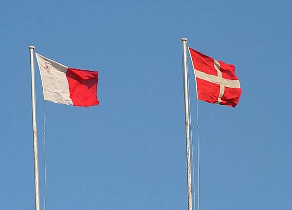位於馬爾他比爾古的聖安吉洛堡,馬爾他國旗和馬爾他騎士團團旗共同飄揚