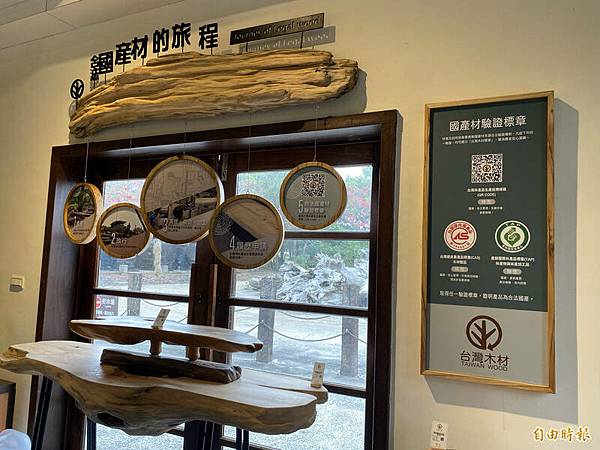 羅東林業文化園區新開張的製材專賣所,介紹國產材驗證履歷。(記者蔡昀容攝)