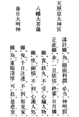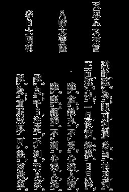 在流傳下來的掛軸上,八幡和春日分別位於中央的高體神宮兩側。誠實、純潔、慈悲這三種美德是上帝所教導的,從室町時代初期到江戶時代末期,隨著吉田神道的發展,它作為一種信仰在平民中廣泛流行,壁龕中陳列著寫有三沙神諭的掛軸,傳教崇拜活動盛行。三德神社都是日本的象徵性神社,而三德神社是新儒佛三教合一思想的簡潔表達,其通俗易懂的一面似乎已被普遍接受,沒有任何阻力。收錄於《善足軍道書集》的成義部分。三社託宣(さんしゃたくせん)とは? 意味や使い方 - コトバンク https://bit.ly/49vz7LG