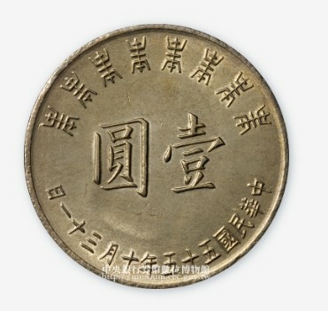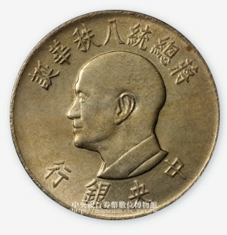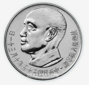 2.新臺幣硬幣最早由臺灣銀行於1949年(民國38年)開始發行,2000年(民國89年)起改由中央銀行直接發行,本件蔣總統八秩華誕壹圓紀念流通幣,是為了慶祝當時的總統蔣中正先生的八十歲大壽所發行的紀念流通硬幣。臺灣銀行民國55年發行蔣總統八秩華誕壹圓紀念硬幣-文化部國家文化記憶庫 https://bit.ly/42LtfM2
