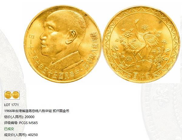 1966年台湾省造蒋总统八秩华诞 贰仟圆金币_安徽邓通艺术品拍卖有限公司