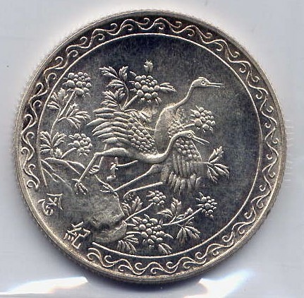 慶祝 蔣公八十大壽,以先總統 蔣公像及雙鶴、牡丹為主題圖案。