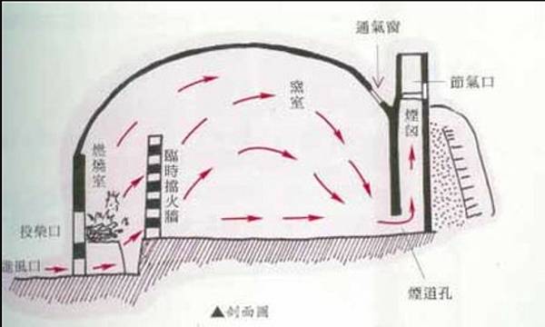 倒焰窯的燃燒設備一般由燃燒室、擋火牆與噴火口組成。