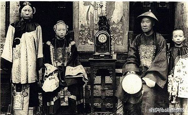 清朝人全家福,丈夫大多数都很严肃,妾侍颜值很高_气质_女子_男子