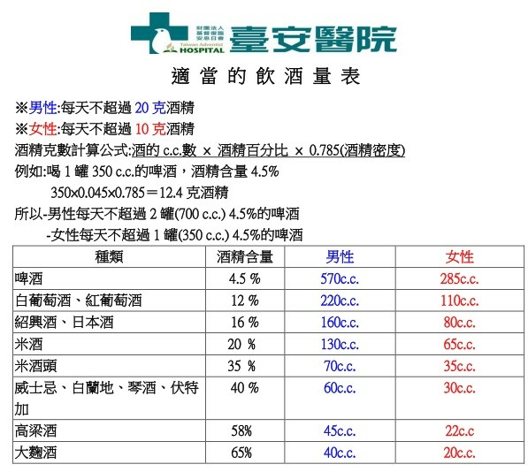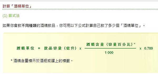 不同可酒款都有不同的酒精濃度,還是得注意個別酒的酒精濃度,可看酒瓶上的成份去酒精當量的換算,計算方式: