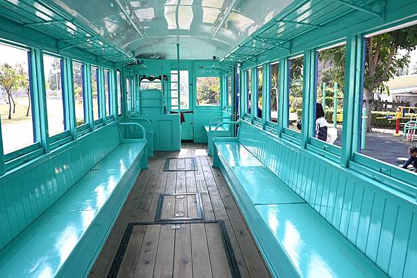 內裝以蒂芬妮綠來設計,兩旁皆為傳統木造窗戶,坐在火車內欣賞沿路風景,非常療癒又放鬆。