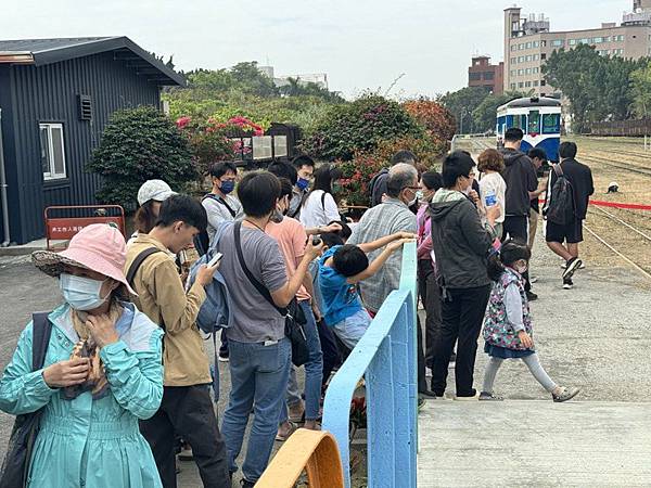 台糖五分車復駛,起點新營鐵道園區中興站擠滿等候民眾。記者莊曜聰/攝影。