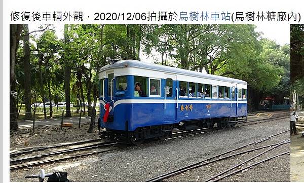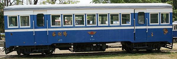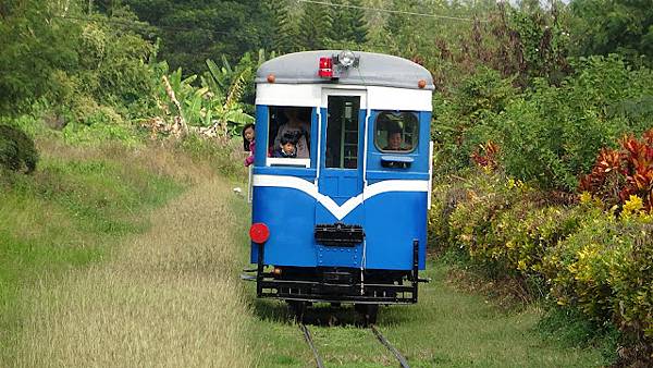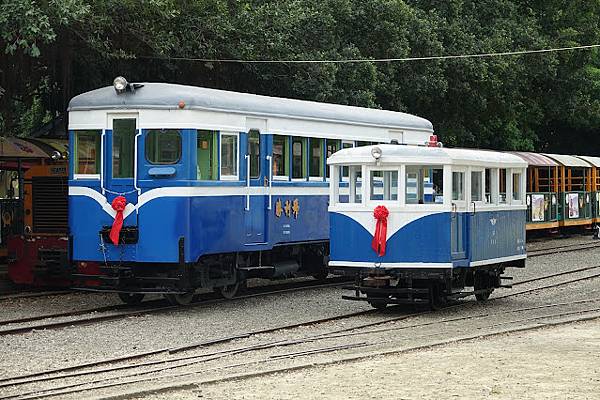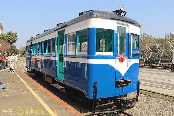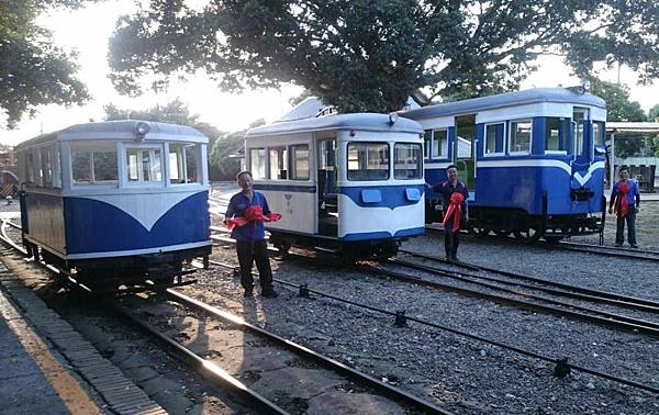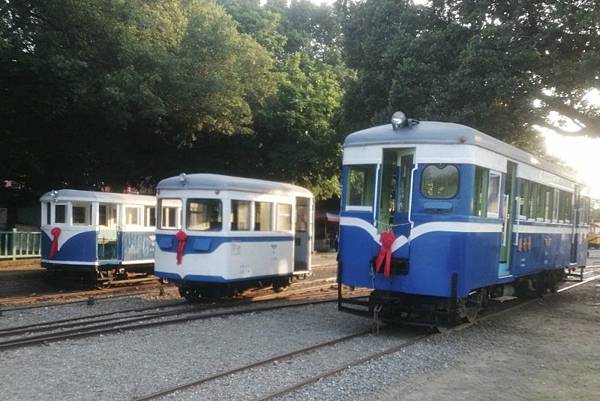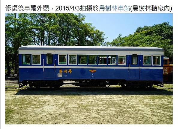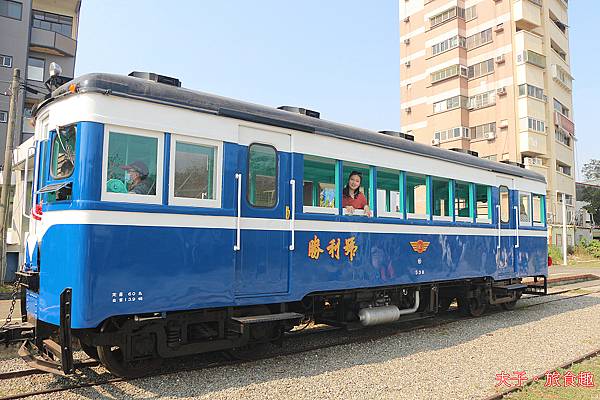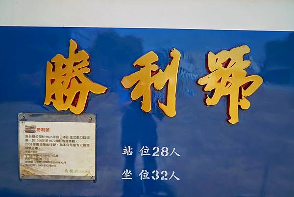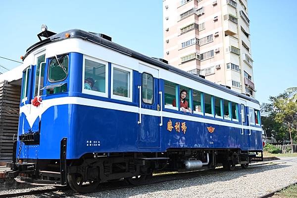 藍白色車體「勝利號」,車身全是檜木打造,造型有如放大版的火車模型,非常可愛又好拍,有新營糖廠「藍皮列車」之稱。