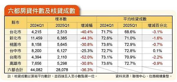維持現行利率2%水準不變-在平均核貸成數方面,六大都會區也多呈現下滑,台北市貸款成數更跌破7成,來到68.6%-平均房貸利率高達2.36%,寫下聯徵中心2009年公布統計資料以來的新高紀錄,房貸成數也寫下近20季以來的新低,平均核貸成數約為71.82%,從目前銀行統計來看,平均首購利率約在2.3~2.6%之間,超低利率時代宣告結束。