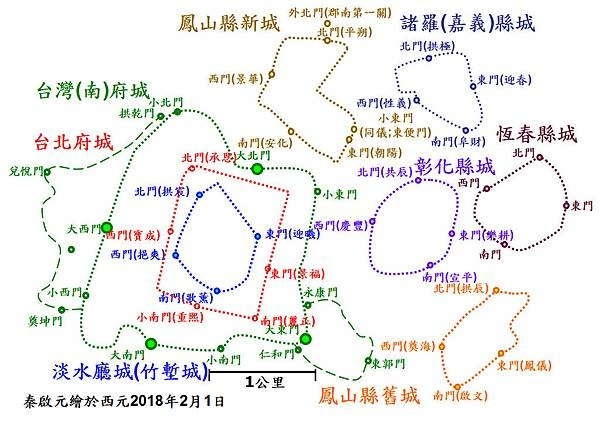 分別是諸羅縣、台灣縣、鳳山縣,