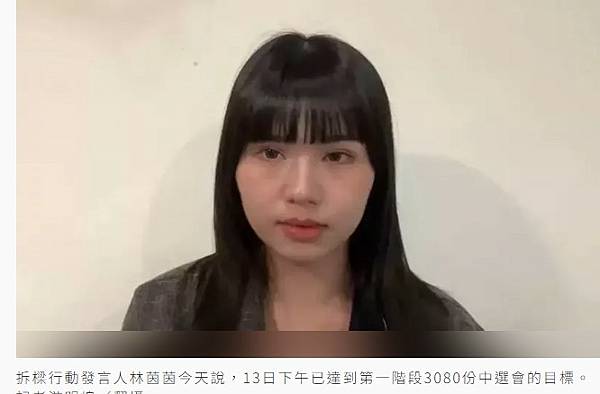 拆樑行動發言人林茵茵今天說,13日下午已達到第一階段3080份中選會的目標。記者游明煌/翻攝