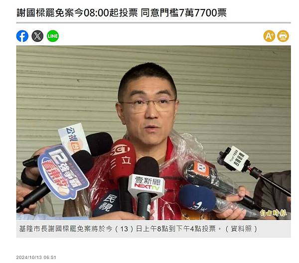 謝國樑罷免案今08:00起投票 同意門檻7萬7700票 - 政治 - 自由時報電子報 https://bit.ly/3BU8sMI