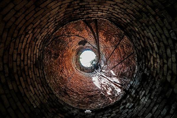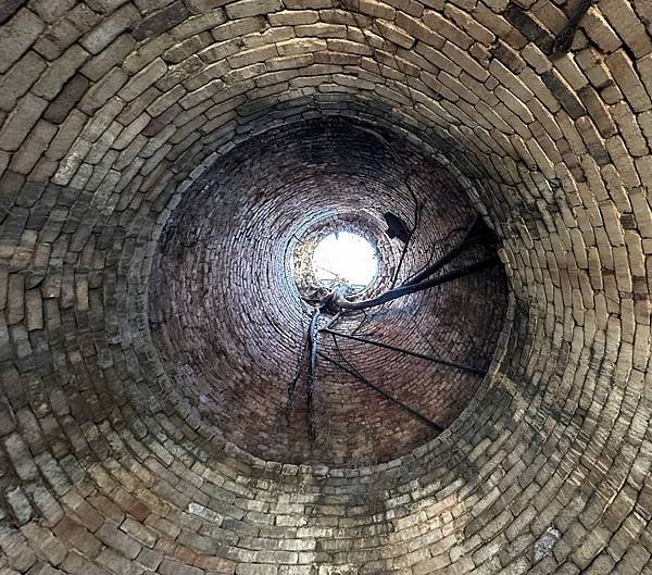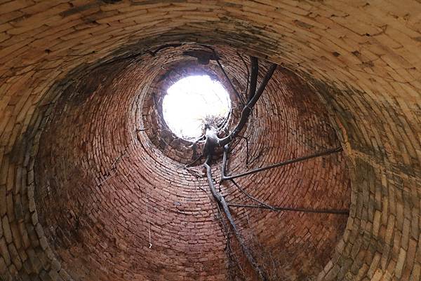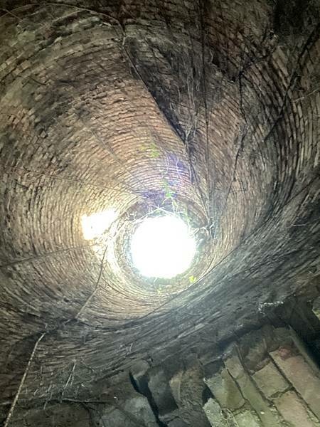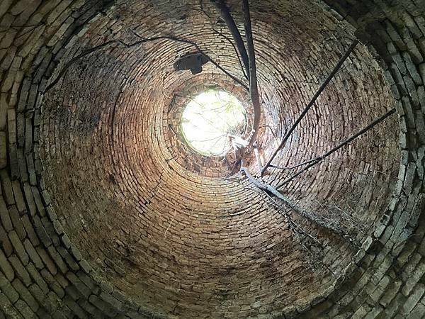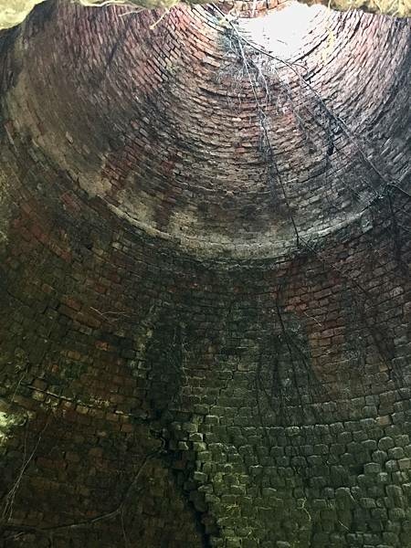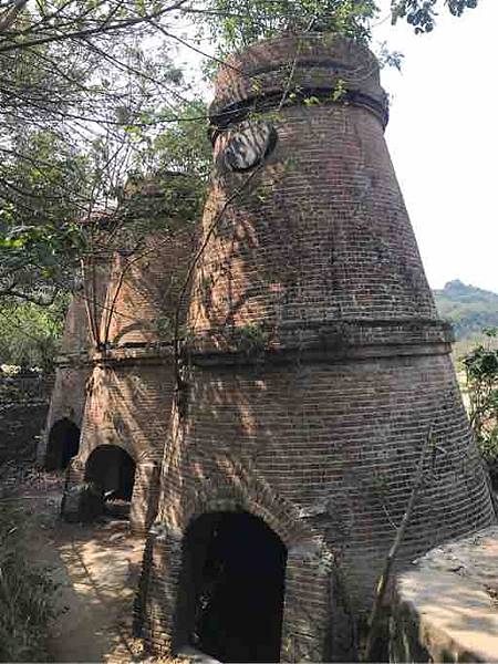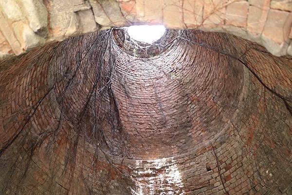 石灰窯:煙囪部屬於環砌法、牆面屬於丁砌法、窯洞底部屬拱磚工法