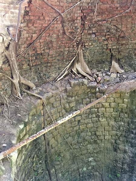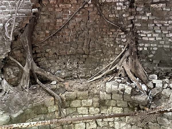 ▼以及隱身樹叢中百年紅磚石灰老窯的遺址,