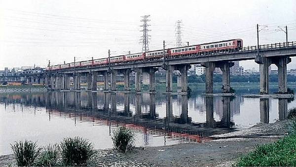 基隆河橋過去是淡水線上的一大地理屏障,後方的圓山大飯店就是臺灣神社舊址