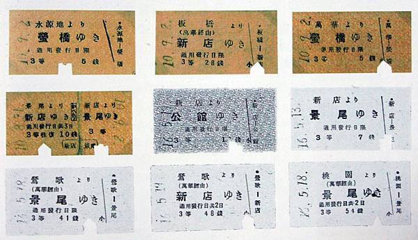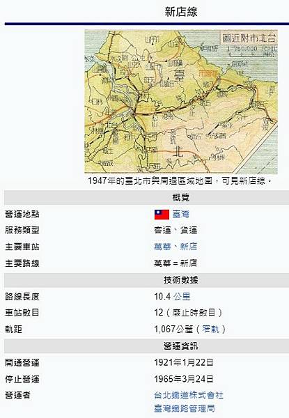 新店線:民國十年通車,這條支線大概只有老一輩的台北人知道,因為它早在民國五十四年就已經停駛。原路線從萬華經過汀州路、羅斯福路、北新路到新店。