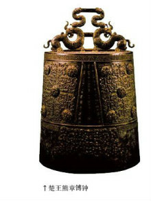 曾侯乙編鐘共65枚,其中1枚是戰國時楚惠王贈送的鎛,稱“楚王熊章鎛鍾”。該鐘通高92.5釐米,重134.8千克,腔體呈扁橢圓形,與其他64枚鍾最明顯的不同點,在於鐘口平整。鐘體頂部為蟠龍式複式鈕,由上下2對蟠龍對稱組成,上面1對蟠龍形狀較小,引頸對銜,下面1對蟠龍形體較大,回首卷尾,形象惟妙惟肖,生動傳神。鉦部兩側以淺浮雕龍紋為襯,每一部分鑄有5個圓泡形飾,圓泡凸面上亦浮雕龍紋。鉦間鑄有31字銘文:“隹(惟)王五十又六祀,返自西陽,楚王熊章,作曾侯乙宗彝,奠之於西陽,其永持用享”。大意為楚惠王五十六年(前433),楚惠王在西陽接到了曾侯乙去世的消息後,在西陽遙祭他,併為他鑄造了這件鎛鍾,以供其永享。這段銘文不僅説明曾國和楚國有着十分密切的關係,而且為曾侯乙墓的斷代提供了有力的證據。據此,曾侯乙死亡的最可能時間為公元前433年。而對曾侯乙屍骸進行碳-14測定後,也表明其死於公元前433年~公元前430年,死時約42歲~45歲。