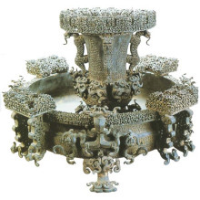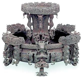 尊是盛酒器,盤一般作水器用,二者合為一器,尊內盛摻有香草汁的酒,祭祀時酌以獻屍,賓禮時酌以飲客。整套器物紋飾繁縟,窮極富麗,其精巧達到先秦青銅器的極點。尤其是器上鏤空裝飾,透視有若干層次,系用失蠟法鑄造,即先用蠟做模,模外做範,加熱烘烤使蠟模融化流失,使整個鑄件模型變成一個空殼,再將青銅溶液澆灌至空殼內,就可鑄成所需的器物。這一發現,證實了在二千四百年前的戰國早期,中國的失蠟法鑄造技術已經達到極高的水準。尊和盤均鑄有“曾侯乙作持用終”銘文。