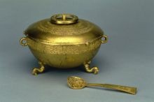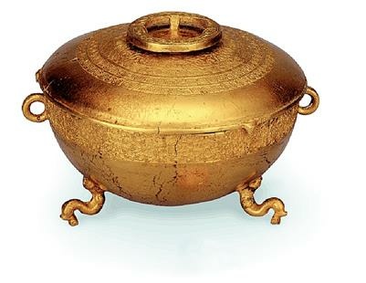 至遲到商代時,我國就出現黃金製品,但多為一些片飾。而此盞是仿銅的金制容器,反映了墓主人的特殊身份。這是所見我國先秦金器中最大最重的1件。