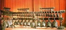 當考古學家打開曾侯乙墓時,這些樂器大多保存完好,基本上保持下葬時的展示位置。在中室,由編鐘、編磬和建鼓組成的長方形空間內,擺放著瑟、笙、排簫、篪等絲竹類樂器。編鐘對面,陳列著九鼎八簋、鑑瑤等青銅禮器,展現了當時以編鐘、編磬為主的金石樂隊的建制和佈局,十分壯觀,用以演奏氣勢恢宏的宮廷雅樂和祭祀音樂。
