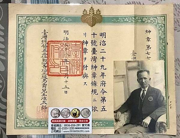 寶源堂郵幣社 - 分享自藏的明治38年台灣紳章證書(1905年)、紳章及配戴紳章老照片,謝謝大家的觀賞及指教... | Facebook https://bit.ly/3IHkOIo