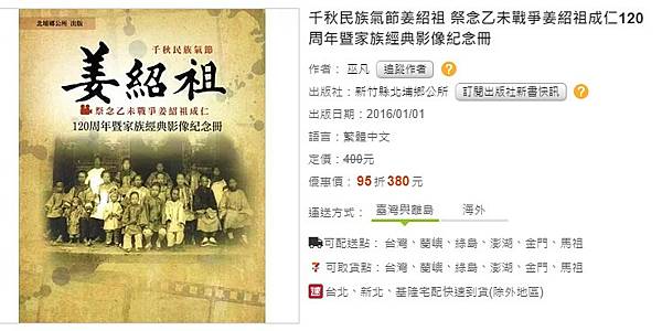 博客來-千秋民族氣節姜紹祖 祭念乙未戰爭姜紹祖成仁120周年暨家族經典影像紀念冊