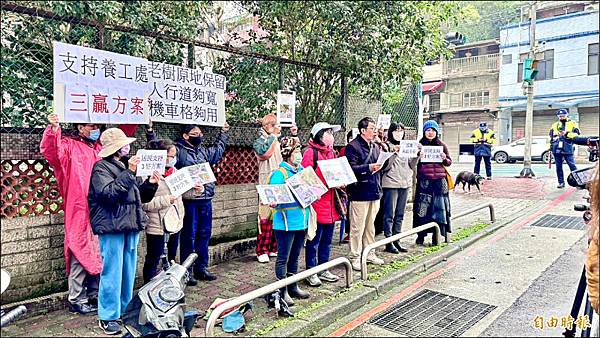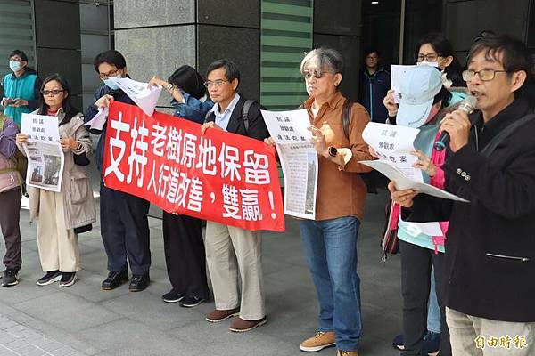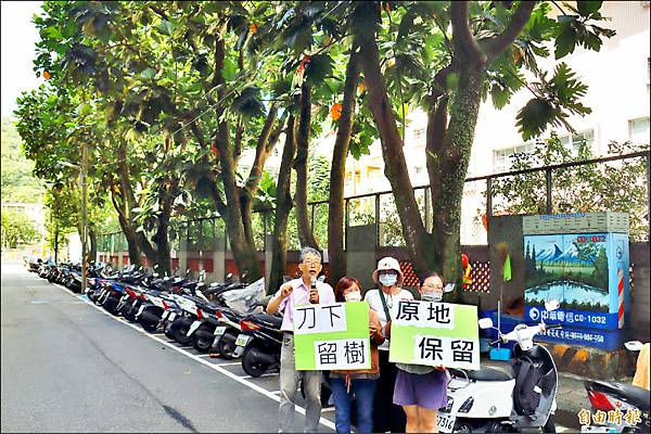 護樹團體再赴青潭國小東側老麵包樹旁,表明支持養工處三贏方案。(記者翁聿煌攝)