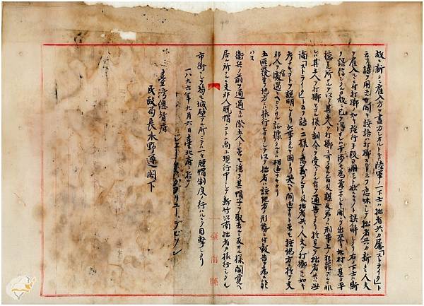 報告書並未寫達飛聲當時的職稱,經查註1檔案中達飛聲的履歷,其在1895年10月擔任日軍隨軍記者,本報告書寫於1896年8月,有可能其當時仍任隨軍記者。